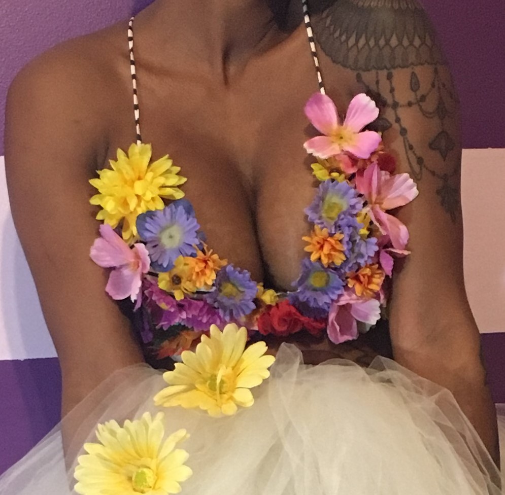 A Cotton bralette featuring a colorful floral pattern and surplice triangle cups.