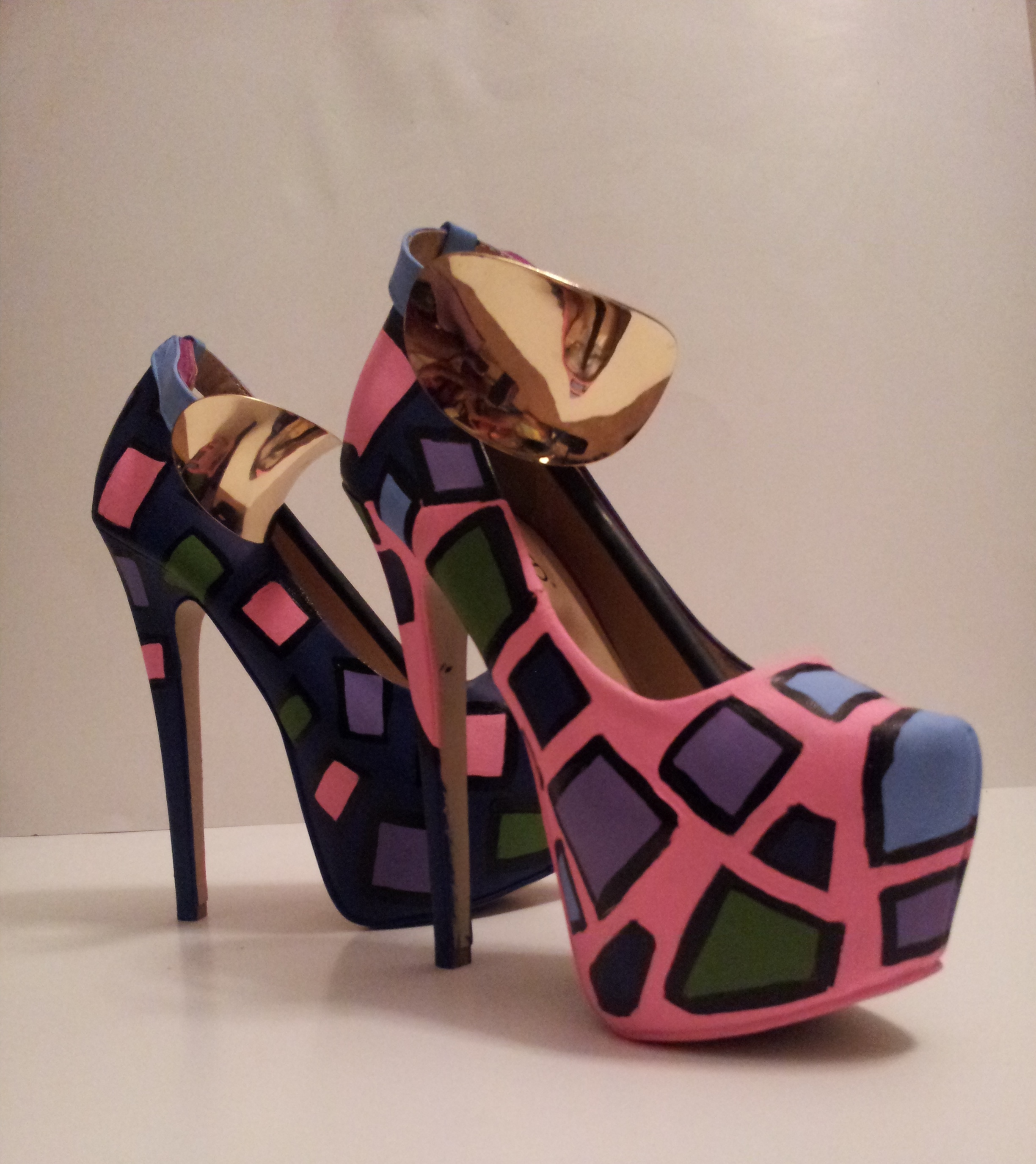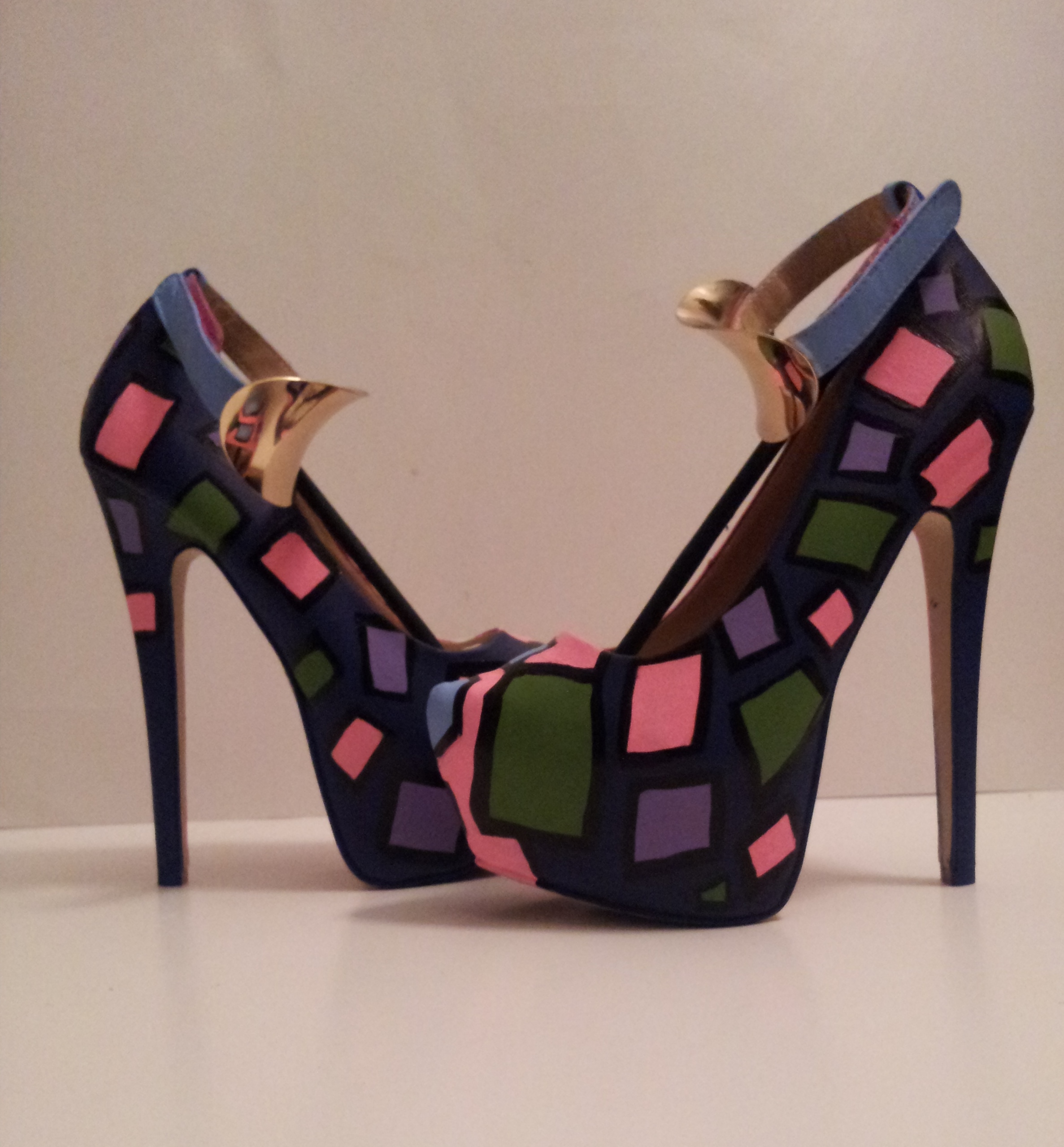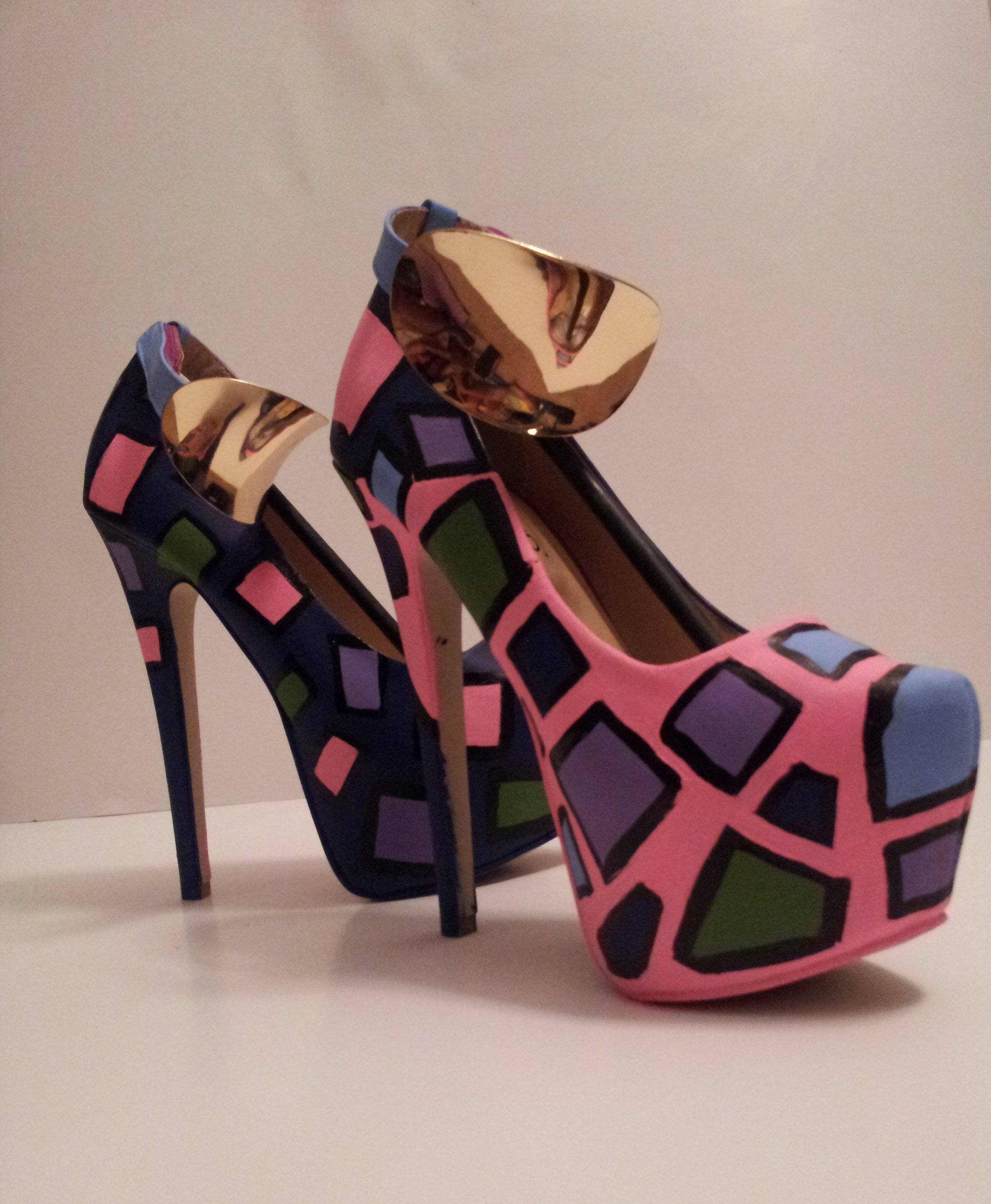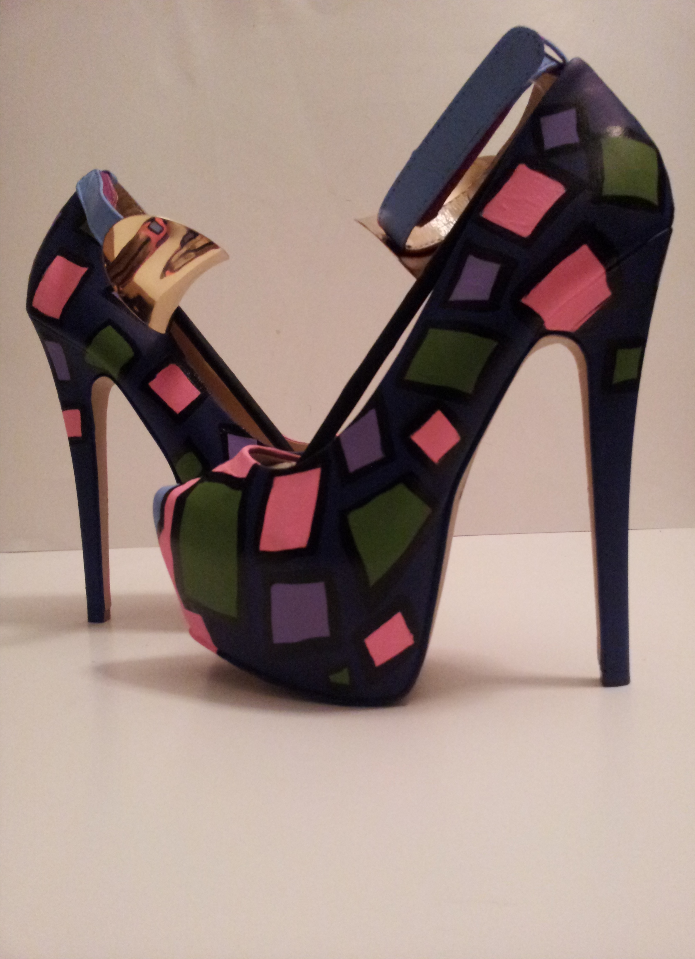 -Multi-Colored paint comes together making these heels wearable art