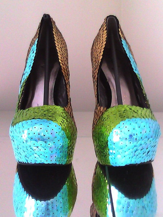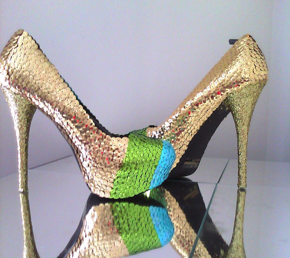 -Gold, Blue and Green Sequin come together to make this beautiful shoe